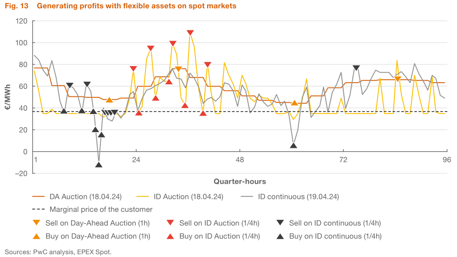 日前/日內(nèi)拍賣:基于電價(jià)預(yù)測(cè)進(jìn)行跨時(shí)段套利(低買高賣)。