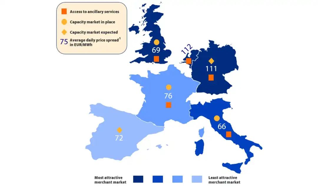 鑒于BESS商業(yè)模式的復(fù)雜性,本文將對德國、英國、法國、西班牙、意大利和荷蘭六大歐洲市場的吸引力進行全面分析。