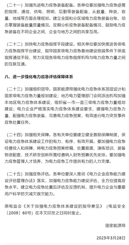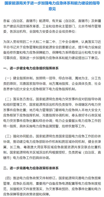 中國(guó)儲(chǔ)能網(wǎng)訊:在“雙碳”目標(biāo)與能源革命的浪潮中,中國(guó)儲(chǔ)能產(chǎn)業(yè)正迎來(lái)黃金發(fā)展期。5月20日,國(guó)家能源局重磅發(fā)布《關(guān)于進(jìn)一步加強(qiáng)電力應(yīng)急體系和能力建設(shè)的指導(dǎo)意見》,為儲(chǔ)能技術(shù)的大規(guī)模商業(yè)化應(yīng)用按下加速鍵。這份文件不僅勾勒出電力應(yīng)急體系建設(shè)的清晰路徑,更從政策扶持、標(biāo)準(zhǔn)制定、技術(shù)創(chuàng)新、市場(chǎng)培育等多方面,為儲(chǔ)能產(chǎn)業(yè)鋪就了一條高速發(fā)展的新賽道。