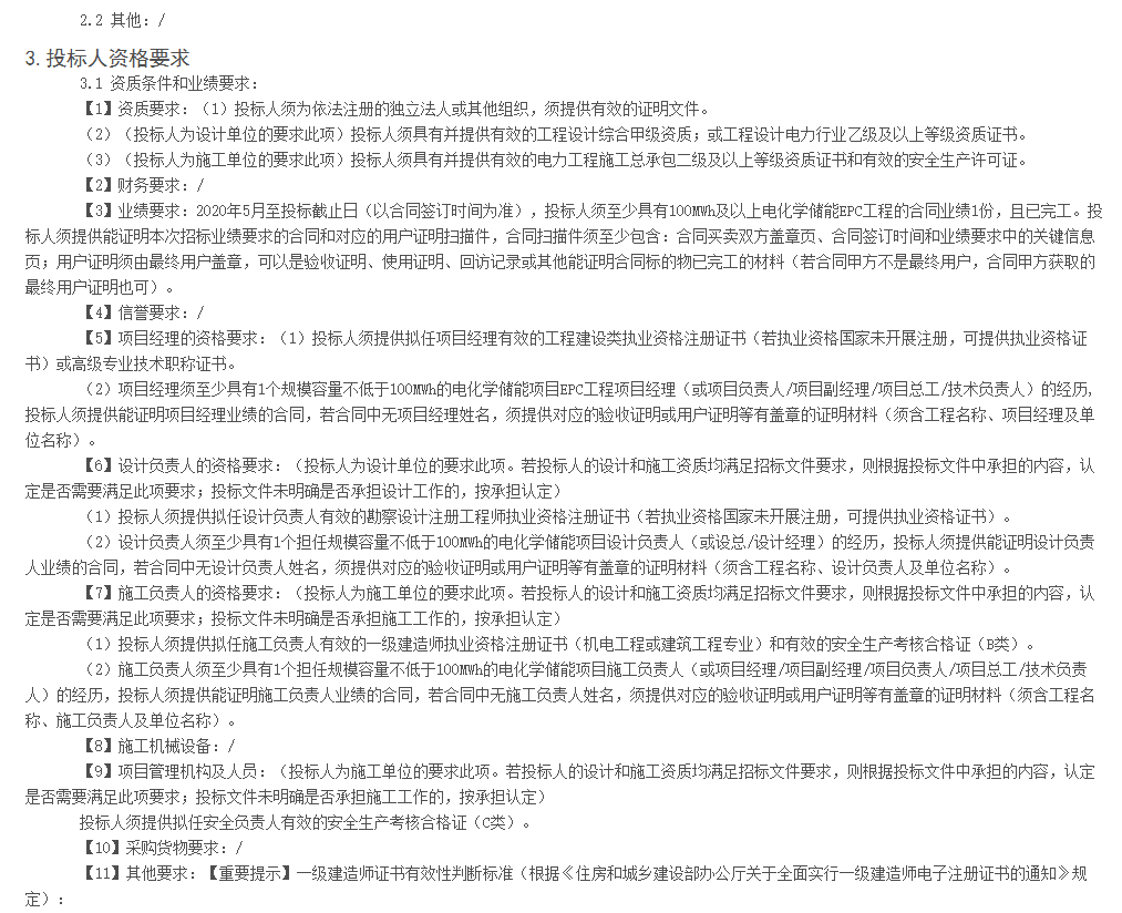 本項(xiàng)目共劃分1個(gè)標(biāo)段(包)。新建一座63.75MW/127.5MWh電化學(xué)儲(chǔ)能電站,儲(chǔ)能電站共以3回集電線路接入緊鄰新建的330kV升壓站;隨電纜線路工程新建儲(chǔ)能光纜線路,起于儲(chǔ)能電站送出點(diǎn),止于國能330kV升壓站相關(guān)設(shè)備光纜接口處。包含設(shè)計(jì)(需滿足發(fā)包人要求并通過審查)、設(shè)備采購(甲供設(shè)備除外)、施工、試驗(yàn)、調(diào)試、試運(yùn)行以及各項(xiàng)手續(xù)辦理工作等,項(xiàng)目建設(shè)以完成并網(wǎng)發(fā)電為目標(biāo),招標(biāo)范圍內(nèi)未涵蓋、缺漏項(xiàng)等內(nèi)容以及為完成項(xiàng)目并網(wǎng)發(fā)電的全部工作均屬于投標(biāo)人建設(shè)內(nèi)容,并承擔(dān)相關(guān)費(fèi)用。