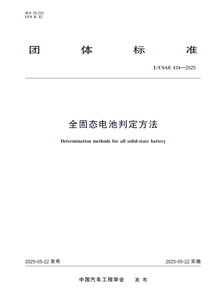 中國儲(chǔ)能網(wǎng)訊:2025年5月22日,中國汽車工程學(xué)會(huì)正式發(fā)布《全固態(tài)電池判定方法》(T/CSAE 434-2025),該標(biāo)準(zhǔn)首次明確了“全固態(tài)電池”定義,要求離子傳遞完全通過固體電解質(zhì)實(shí)現(xiàn),與混合固液電解質(zhì)電池形成嚴(yán)格技術(shù)分界。該標(biāo)準(zhǔn)由中汽研新能源汽車檢驗(yàn)中心(天津)有限公司牽頭聯(lián)合50多家單位共同起草,旨在解決行業(yè)對(duì)全固態(tài)電池定義模糊、液態(tài)物質(zhì)含量測試方法缺失等問題,為全固態(tài)電池技術(shù)升級(jí)和產(chǎn)業(yè)化應(yīng)用提供科學(xué)依據(jù),通過團(tuán)體標(biāo)準(zhǔn)先行先試也為后續(xù)全固態(tài)電池國家標(biāo)準(zhǔn)制定提供實(shí)踐支撐。