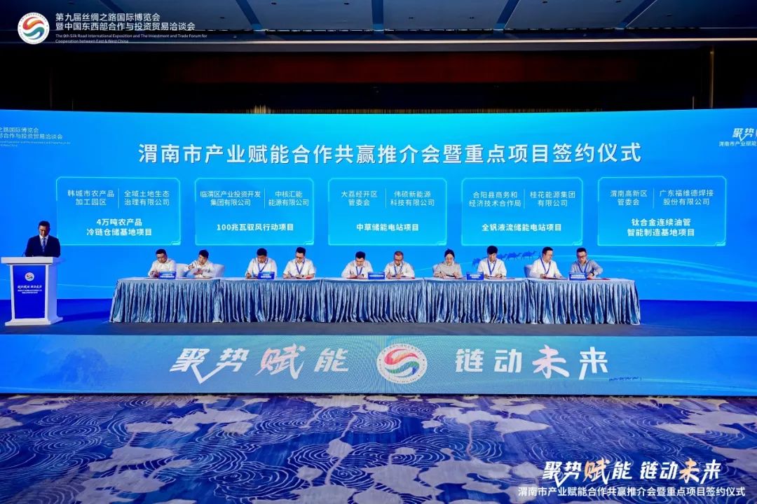 中國(guó)儲(chǔ)能網(wǎng)訊:5月21日,在第九屆絲博會(huì)召開(kāi)之際,渭南市產(chǎn)業(yè)賦能合作共贏推介會(huì)暨重點(diǎn)項(xiàng)目簽約儀式在西安舉行,渭南市委書(shū)記樊維斌、市長(zhǎng)陳曉勇等出席活動(dòng)。會(huì)上,陜西桂花能源集團(tuán)有限公司作為新型儲(chǔ)能領(lǐng)域的領(lǐng)軍企業(yè),與渭南市合陽(yáng)縣正式簽約合陽(yáng)縣80MW/320MWh全釩液流儲(chǔ)能電站項(xiàng)目。