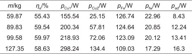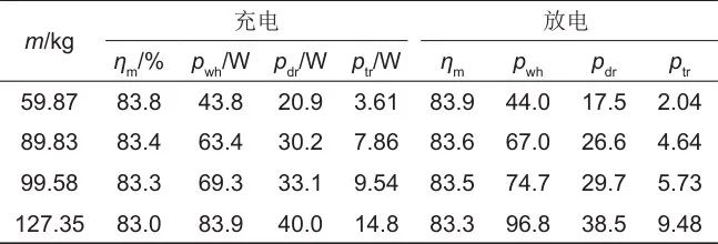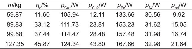 此外,由實驗數據計算的m=127.35 kg時的系統(tǒng)各損耗見表5。