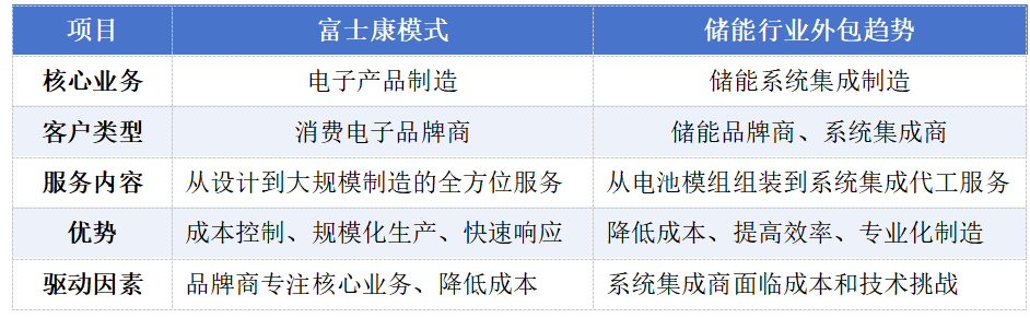 這與當(dāng)年智能手機(jī)行業(yè)演進(jìn)如出一轍。蘋果正是在面對紅海市場競爭時(shí),選擇通過“設(shè)計(jì)+代工”的模式突圍。富士康作為全球最大的電子制造服務(wù)商,2024年?duì)I收達(dá)6.86萬億新臺幣(約1.53萬億元人民幣),為超過500家品牌提供制造服務(wù),其出貨量全球占比達(dá)50%。這一“重代工、輕資產(chǎn)”的高效分工模式,為儲能企業(yè)提供了可復(fù)制路徑。