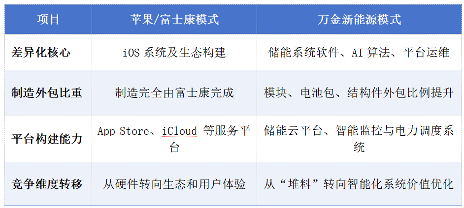 正如蘋果通過iOS系統(tǒng)形成生態(tài)閉環(huán),制造雖由富士康完成,但差異化核心始終掌握在自己手中。儲能行業(yè)也將遵循相同邏輯:制造專業(yè)化,定義與智能服務(wù)內(nèi)化。最終贏得市場的,將是那些既能整合代工資源,又能主導(dǎo)系統(tǒng)智能化演進(jìn)的品牌主導(dǎo)者。
