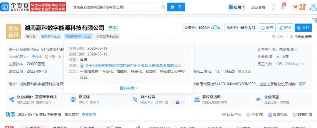 中國(guó)儲(chǔ)能網(wǎng)訊:近日,湖南省工業(yè)和信息化廳正式公布2025年度湖南省“專精特新”中小企業(yè)認(rèn)定名單,湖南贏科數(shù)字能源科技有限公司(以下簡(jiǎn)稱“贏科數(shù)能”)憑借在能源數(shù)字化領(lǐng)域的專業(yè)化技術(shù)實(shí)力、精細(xì)化運(yùn)營(yíng)能力、特色化產(chǎn)品布局及創(chuàng)新化發(fā)展成果,成功通過認(rèn)定。這一榮譽(yù)標(biāo)志著公司在核心技術(shù)攻關(guān)、市場(chǎng)競(jìng)爭(zhēng)力及行業(yè)影響力方面再獲權(quán)威認(rèn)可。