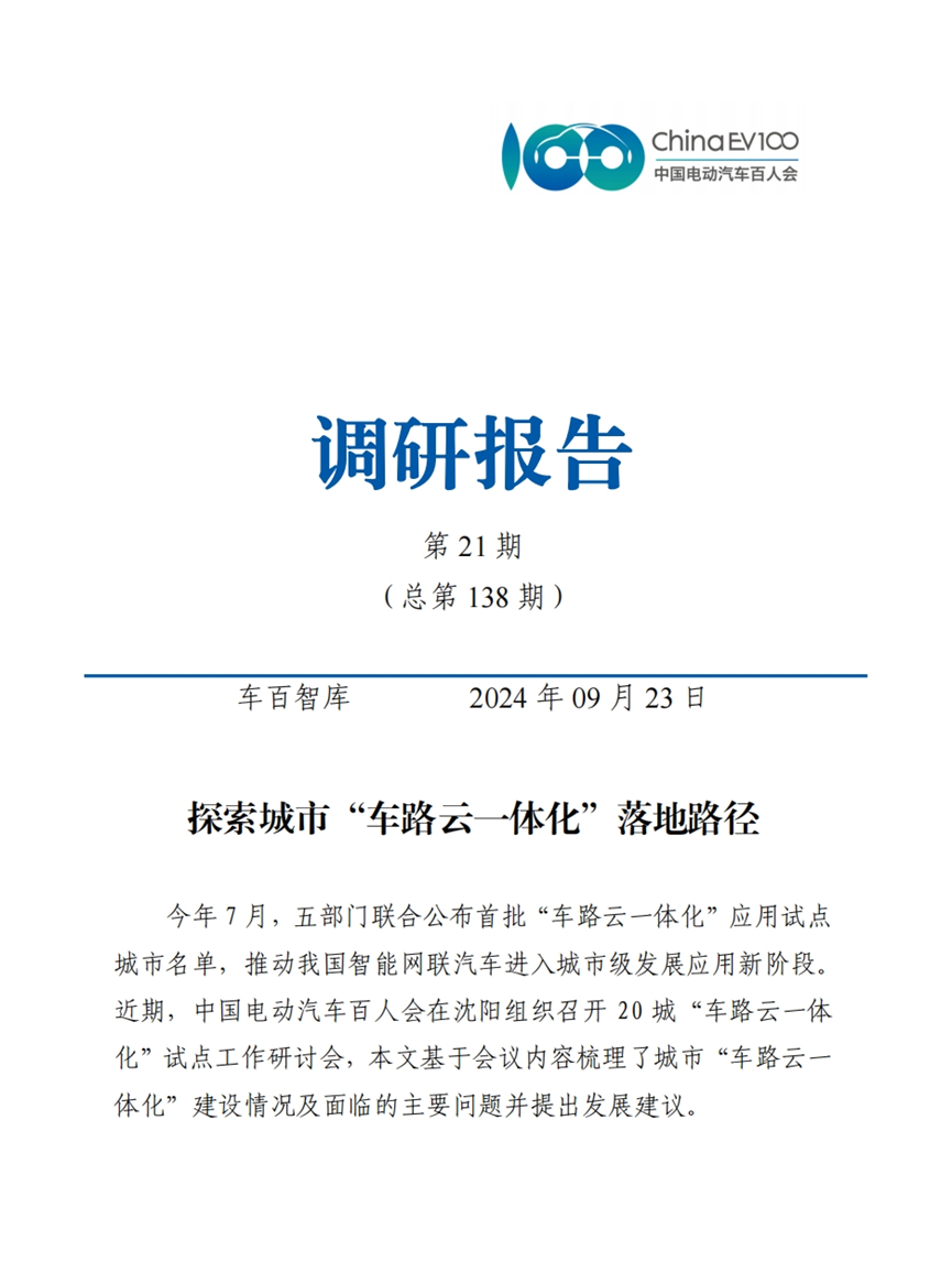 為推進城市“車路云一體化”發(fā)展,《報告》提出以下建議:加強頂層設計,完善“車路云一體化”發(fā)展規(guī)劃和法規(guī)體系;加快規(guī)劃和實施統(tǒng)一的“車路云一體化”標準體系;加大超長期國債支持,構(gòu)建國資主導、社會資本參與的投建運主體;以城市全域覆蓋為目標,分級分類推進項目建設;積極推廣典型應用場景,提升試點落地效果;深度挖掘“車路云一體化”數(shù)據(jù)要素價值;建立健全“車路云一體化”建設運營評價機制。