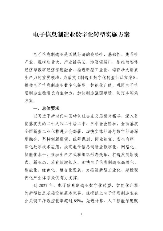 三部門關(guān)于印發(fā)《電子信息制造業(yè)數(shù)字化轉(zhuǎn)型實施方案》的通知