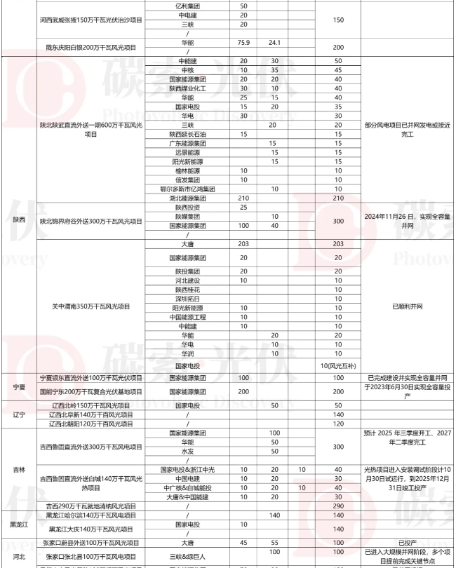 目前,首批基地項(xiàng)目已全面開工建設(shè),業(yè)主單位涵蓋國家能源集團(tuán)、華能、華電、國家電投、華潤、大唐、三峽、中核、中廣核、蒙能、京能等多家央國企。