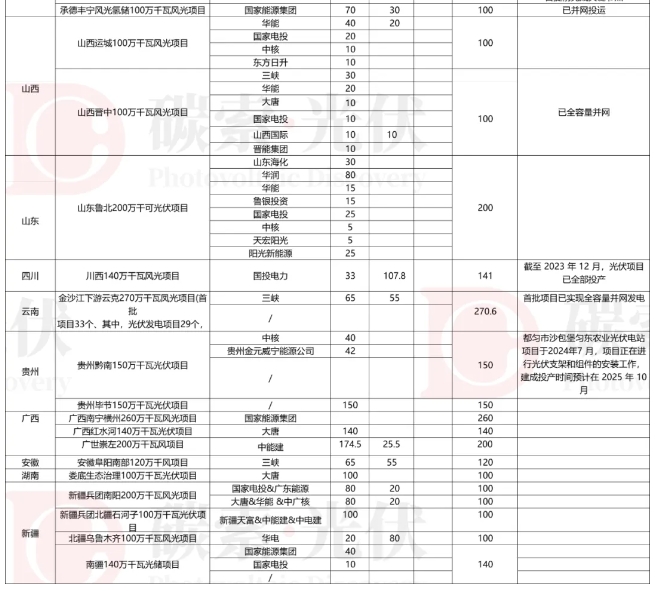 第一批:業(yè)主規(guī)模約97.05GW,項(xiàng)目已全部開工,絕大部分已并網(wǎng)。