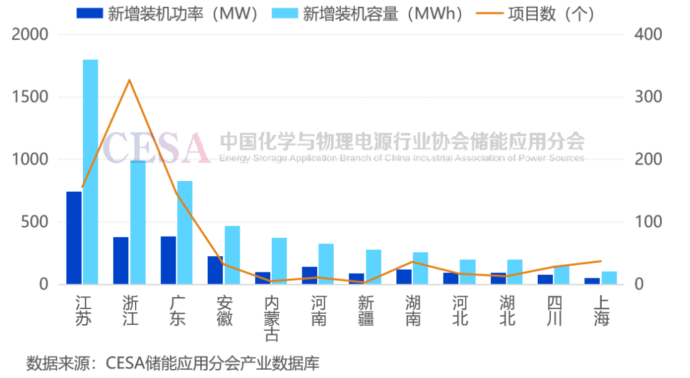 圖為2024年用戶(hù)側(cè)新型儲(chǔ)能新增裝機(jī)容量超100MWh的省份