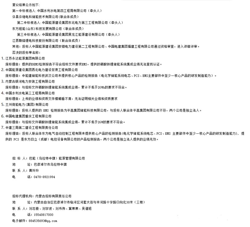 這場招標活動因5月23日發(fā)布的復議公告而備受業(yè)界矚目。公告顯示,共有9家企業(yè)的投標被否決,同時有3家企業(yè)提出了異議。這些細節(jié)不僅揭示了儲能行業(yè)在快速發(fā)展過程中暴露出的行業(yè)規(guī)范與市場秩序問題,更成為了推動行業(yè)向更高質(zhì)量、更規(guī)范化方向轉(zhuǎn)型升級的重要契機。
