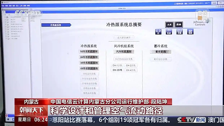 總臺央視記者 張叢婧:這里用上了智能溫控系統(tǒng),可以看到,它能實(shí)時采集機(jī)房里每個區(qū)域的溫濕度情況,通過算法自動調(diào)節(jié)每臺空調(diào)的溫度和風(fēng)速,就像“智慧大腦”,可以給服務(wù)器定制制冷方案,最大程度節(jié)能降耗。