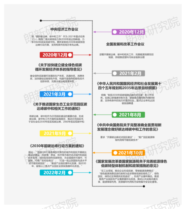 2020年9月,習(xí)近平主席在第七十五屆聯(lián)合國(guó)大會(huì)中提出“雙碳”戰(zhàn)略目標(biāo),隨后多個(gè)政策文件密集出臺(tái),給出了“雙碳”建設(shè)、綠色低碳轉(zhuǎn)型的指導(dǎo)意見和發(fā)展目標(biāo)等,如圖1所示: