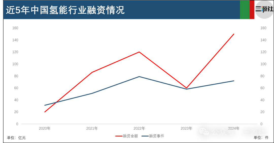 中國(guó)儲(chǔ)能網(wǎng)訊:據(jù)三源社不完全統(tǒng)計(jì),自2020年起截至目前,全國(guó)氫能企業(yè)已披露融資事件超300起,融資金額高達(dá)500億元。雖然2023年行業(yè)整體發(fā)展遇冷,投資熱情驟減,但隨著近兩年綠氫項(xiàng)目的火熱,氫能行業(yè)的投資熱情似乎又起來(lái)了。