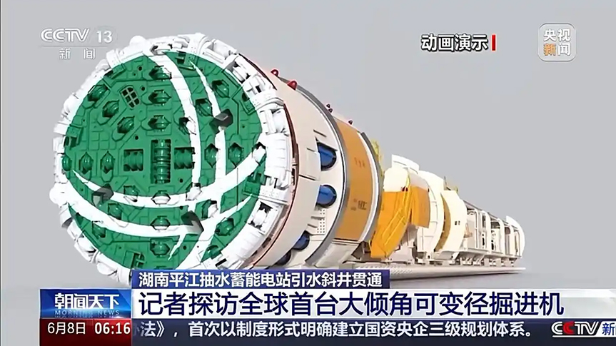 在平江抽水蓄能電站的引水斜井建設(shè)中,全球首臺大傾角可變徑硬巖掘進(jìn)機(jī)——“天岳號”的采用,讓斜井的施工速度提高了三倍。