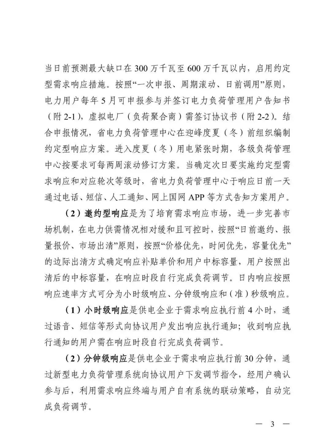 精準(zhǔn)實(shí)施需求響應(yīng)措施。按照“一次申報(bào)、周期滾動(dòng)、日前調(diào)用”原則,開(kāi)展負(fù)荷資源年度申報(bào)、周計(jì)劃滾動(dòng),實(shí)現(xiàn)日前調(diào)用、日內(nèi)調(diào)用全域平衡。提前儲(chǔ)備、滾動(dòng)修訂迎峰度夏需求響應(yīng)專(zhuān)項(xiàng)方案,力爭(zhēng)具備最大600萬(wàn)千瓦約定型響應(yīng)能力,鼓勵(lì)用戶(hù)側(cè)儲(chǔ)能參與需求響應(yīng)。