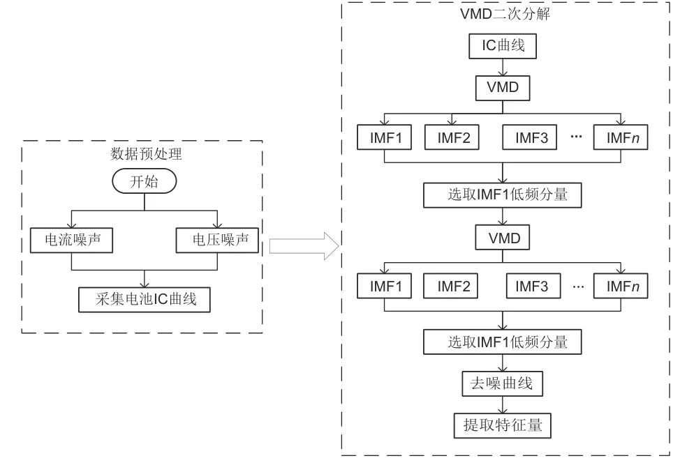 基于容量增量曲線三次變分模態(tài)分解(VMD)的電池健康狀態(tài)估計(jì)模型框架構(gòu)建方法示意圖如圖10所示。該框架分為三個(gè)主要部分: