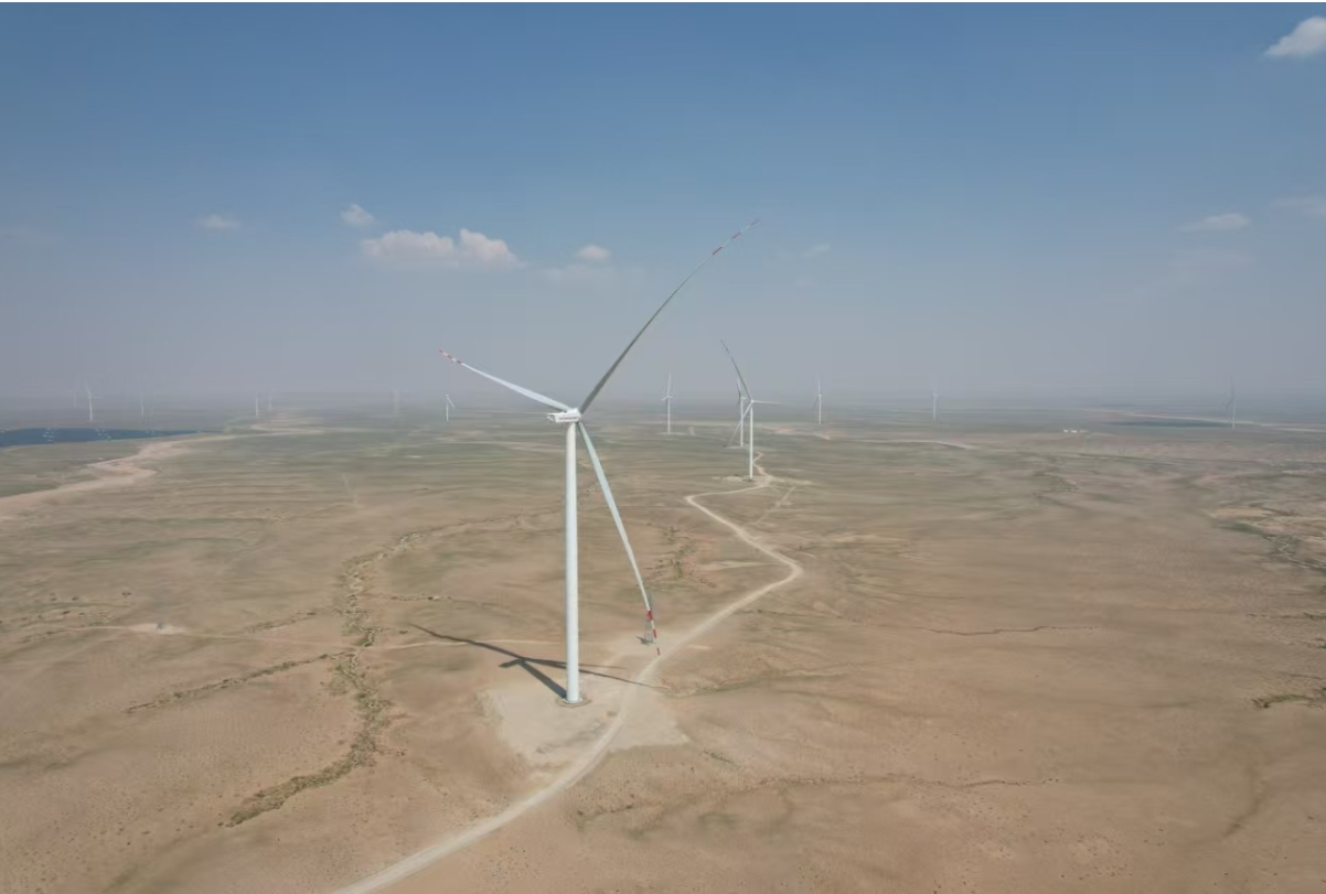 烏拉特后旗100萬千瓦風(fēng)儲基地保障性項(xiàng)目,位于內(nèi)蒙古自治區(qū)巴彥淖爾市烏拉特后旗境內(nèi)。項(xiàng)目建設(shè)內(nèi)容包括安裝100臺10MW風(fēng)機(jī)及其配套工程,同時(shí)建設(shè)2座220千伏升壓站及運(yùn)營管理中心等配套設(shè)施。此次成功并網(wǎng)的10MW風(fēng)機(jī),風(fēng)機(jī)輪轂高度125米,葉輪直徑達(dá)233米,掃風(fēng)面積約42000平方米,相當(dāng)于6個(gè)標(biāo)準(zhǔn)足球場。葉片采用高效翼型,采取防沙石設(shè)計(jì),運(yùn)用新材料“碳纖維”等增強(qiáng)風(fēng)機(jī)捕風(fēng)能力,在相同風(fēng)速下,可捕獲更多風(fēng)能,有效提升區(qū)域電力供應(yīng)水平。項(xiàng)目全容量并網(wǎng)投運(yùn)后,每年可輸送清潔電力約35億千瓦時(shí),可節(jié)約標(biāo)準(zhǔn)煤139萬噸,減少二氧化碳排放量347萬噸。對促進(jìn)黃河流域經(jīng)濟(jì)綠色轉(zhuǎn)型和可持續(xù)發(fā)展具有重要意義。