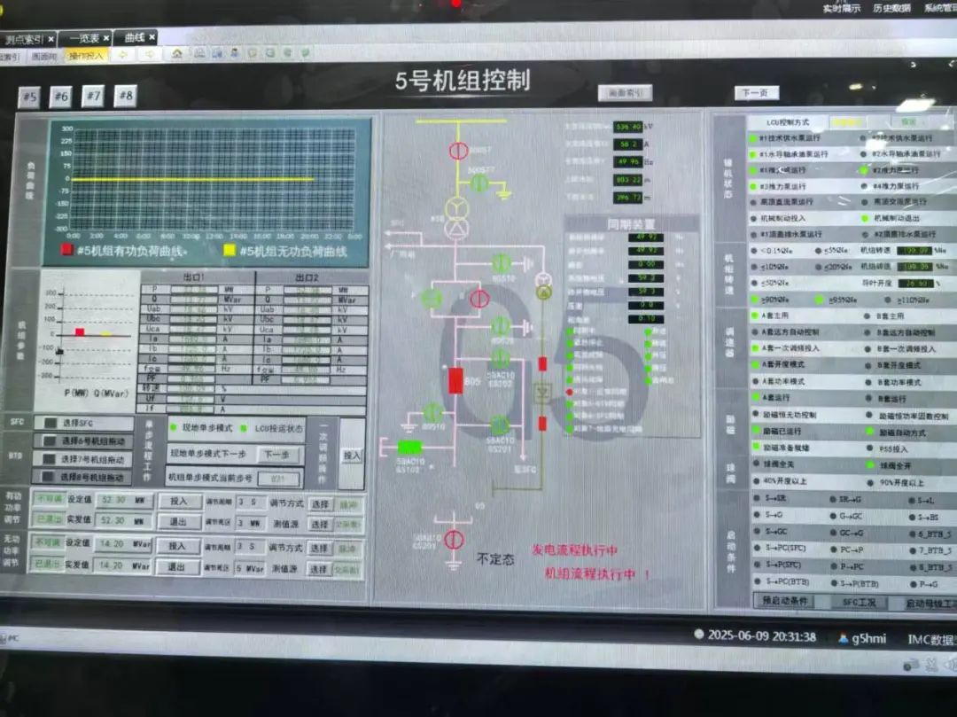 中國儲能網(wǎng)訊:2025年6月9日20點30分57秒, 梅州抽水蓄能電站二期工程繼以變頻啟動裝置(SFC)拖動抽水調(diào)相(CP)工況啟動后,首次實現(xiàn)了發(fā)電工況并網(wǎng)一次成功,順利實現(xiàn)機組出力50兆瓦,運行15分鐘以后甩負荷停機。首次發(fā)電并網(wǎng)過程中,機組狀態(tài)控制良好,各系統(tǒng)運行穩(wěn)定,各項指標優(yōu)良,標志著梅蓄二期電站首臺機組調(diào)試工作取得重大階段性進展。