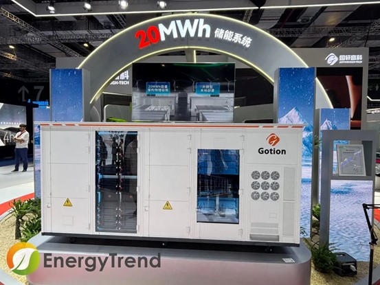 國(guó)軒高科展出了20MWh乾元智儲(chǔ)系統(tǒng),該系統(tǒng)搭載的是314Ah電芯,通過優(yōu)化系統(tǒng)Pack并聯(lián)設(shè)計(jì)和散熱布局,最終實(shí)現(xiàn)單體集裝箱20MWh容量的突破。