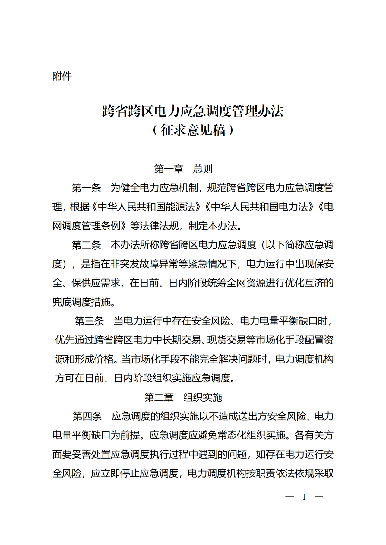 附件:跨省跨區(qū)電力應(yīng)急調(diào)度管理辦法(征求意見稿)