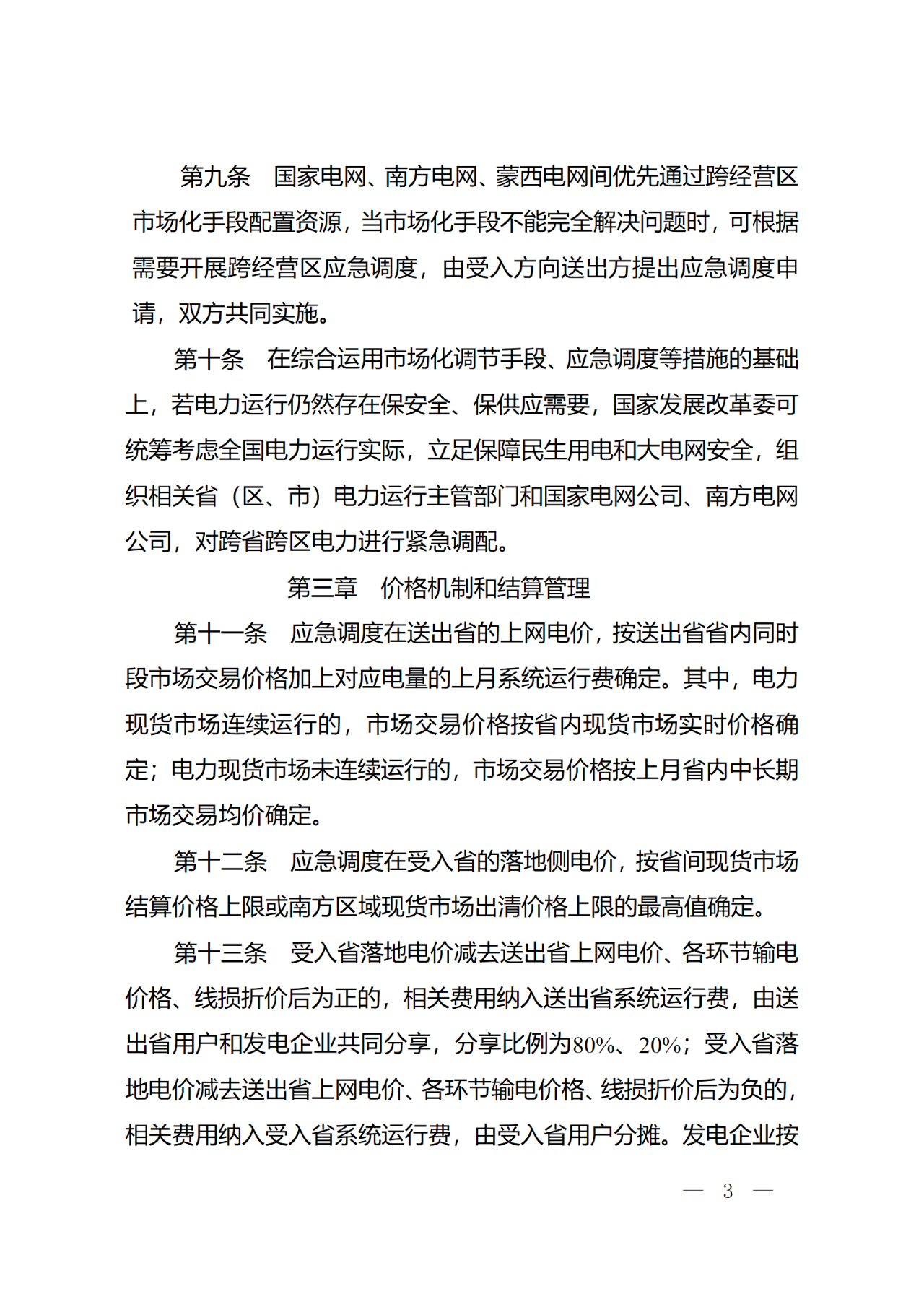 中國儲能網(wǎng)訊:6月13日,國家發(fā)展改革委就《跨省跨區(qū)電力應(yīng)急調(diào)度管理辦法(征求意見稿)》公開征求意見,當(dāng)電力運行中存在安全風(fēng)險、電力電量平衡缺口時,優(yōu)先通過跨省跨區(qū)電力中長期交易、現(xiàn)貨交易等市場化手段配置資源和形成價格。當(dāng)市場化手段不能完全解決問題時,電力調(diào)度機(jī)構(gòu)方可在日前、日內(nèi)階段組織實施應(yīng)急調(diào)度。