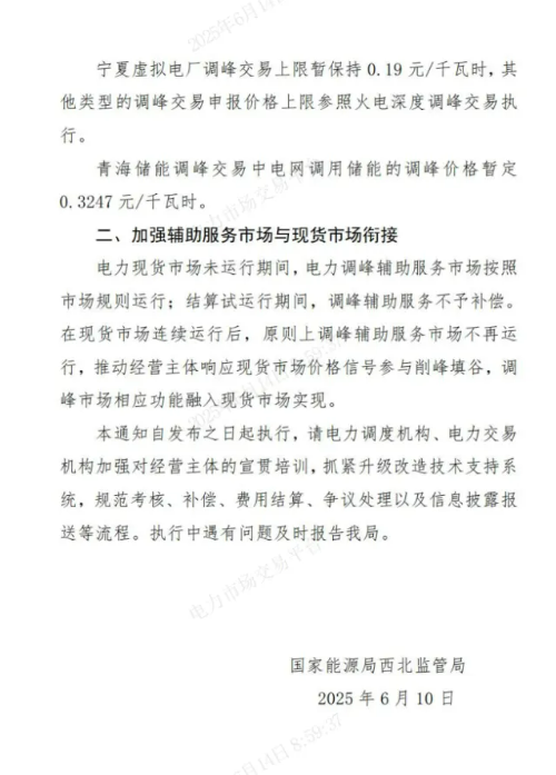中國儲(chǔ)能網(wǎng)訊:6月11日,青海電力市場(chǎng)管理委員會(huì)發(fā)布《關(guān)于投票表決電力輔助服務(wù)市場(chǎng)價(jià)格機(jī)制等相關(guān)事項(xiàng)的通知》。通知指出,國家能源局西北監(jiān)管局對(duì)電力輔助服務(wù)市場(chǎng)價(jià)格機(jī)制等相關(guān)事項(xiàng)進(jìn)行了明確(審議稿):調(diào)整了調(diào)峰輔助服務(wù)市場(chǎng)價(jià)格上限,提出加強(qiáng)輔助服務(wù)市場(chǎng)與現(xiàn)貨市場(chǎng)銜接。