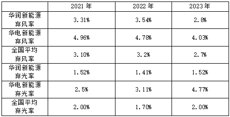 表3:2021—2023年華潤新能源和華電新能源棄風(fēng)棄光率