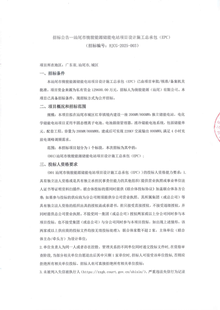 中國(guó)儲(chǔ)能網(wǎng)訊:6月18日,廣東兩項(xiàng)目?jī)?chǔ)能電站EPC招標(biāo)啟動(dòng)。總規(guī)模達(dá)400MW/1600MWh。
