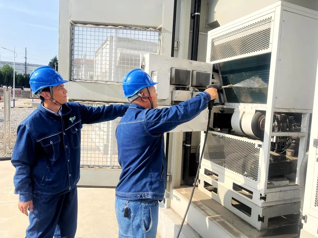 他們嚴(yán)格貫徹水發(fā)能源集團(tuán)及地調(diào)工作部署,系統(tǒng)開(kāi)展電池艙液冷系統(tǒng)專項(xiàng)維護(hù):通過(guò)深度清潔散熱片、精準(zhǔn)補(bǔ)充冷卻液等標(biāo)準(zhǔn)化作業(yè),顯著提升系統(tǒng)冷卻效能;同步完成PCS艙散熱通風(fēng)口濾網(wǎng)除塵處理,有效規(guī)避粉塵堆積導(dǎo)致的散熱效率衰減。