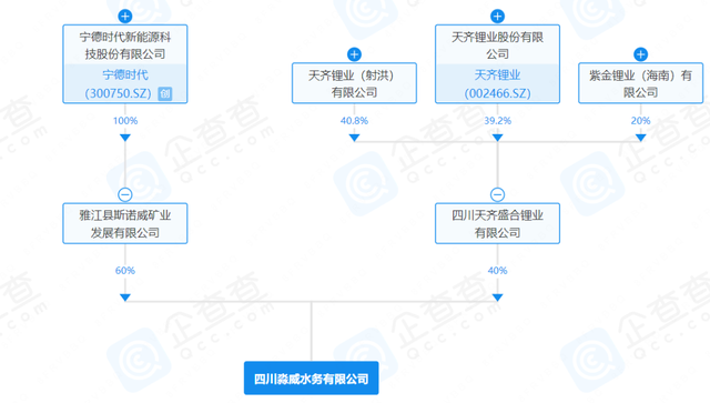 企查查顯示,慕云澤由天齊鋰業(yè)子公司四川天齊盛合鋰業(yè)有限公司(以下簡(jiǎn)稱(chēng)“盛合鋰業(yè)”)、寧德時(shí)代子公司雅江縣斯諾威礦業(yè)發(fā)展有限公司(以下簡(jiǎn)稱(chēng)“斯諾威”)共同持股。慕云澤的成立時(shí)間是6月12日,注冊(cè)資本5億元,經(jīng)營(yíng)范圍包括選礦、非金屬礦及制品銷(xiāo)售等。