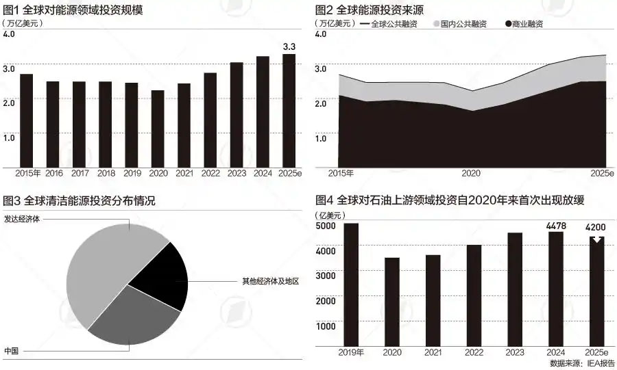 近日,國際能源署(IEA)發(fā)布《世界能源投資報告2025》(下稱“報告”)。報告顯示,在全球地緣政治緊張局面加劇且經(jīng)濟(jì)不確定性增強(qiáng)的背景下,2025年,全球能源領(lǐng)域的投資規(guī)模仍有望創(chuàng)歷史新高,總投資規(guī)模將達(dá)3.3萬億美元,較2024年增長約2%。其中,以可再生能源、核能、風(fēng)能、電氣化等為代表的清潔能源技術(shù)的引資規(guī)模有望達(dá)到創(chuàng)紀(jì)錄的2.2萬億美元,幾乎是傳統(tǒng)化石燃料(1.1萬億美元)所吸引投資規(guī)模的2倍。