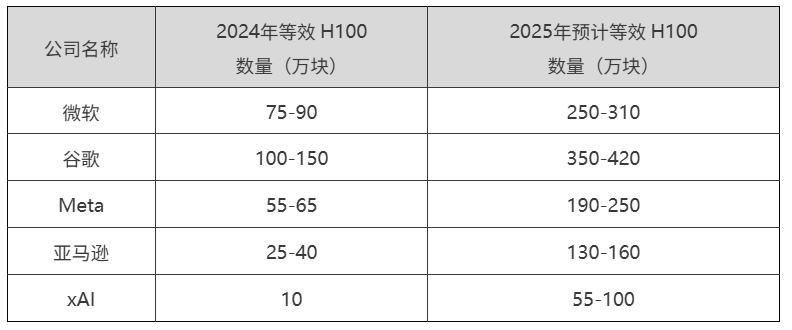 圖表1國際五大科技巨頭現(xiàn)有算力表