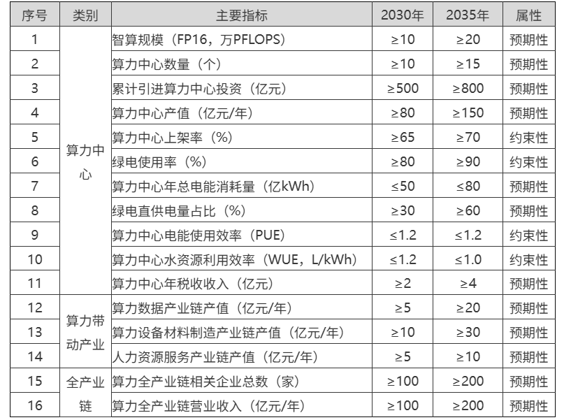 圖表3蒙東(通遼)綠色算力產(chǎn)業(yè)發(fā)展規(guī)劃主要指標(biāo)表