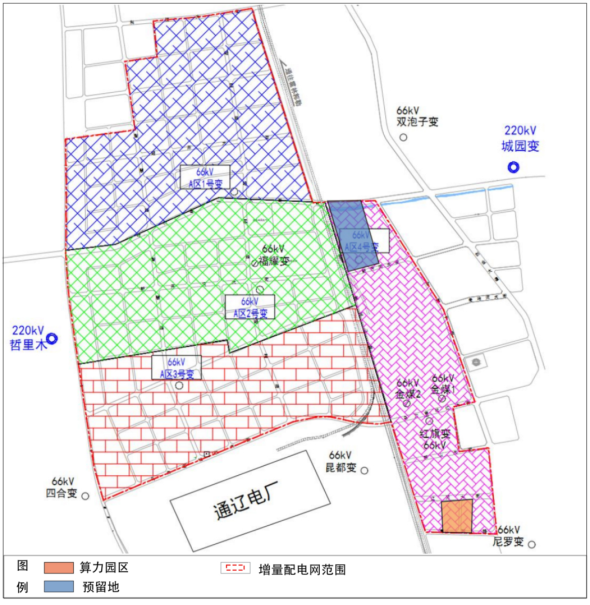 圖表7通北產(chǎn)業(yè)園增量配電網(wǎng)范圍及算力園區(qū)功能分區(qū)示意圖
