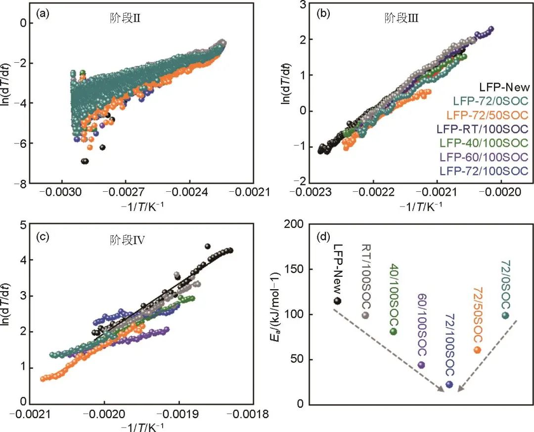 表3 LFP電池樣品在各階段(II~IV)的表觀活化能Ea