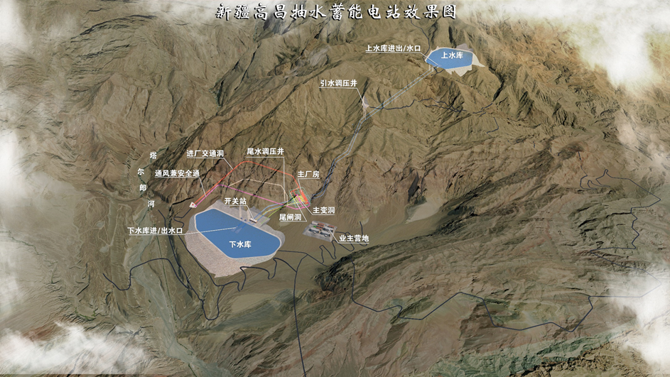 高昌抽水蓄能電站位于新疆維吾爾自治區(qū)吐魯番市高昌區(qū)境內(nèi),距吐魯番市、烏魯木齊市城區(qū)公路里程分別為50km、210km。樞紐工程主要由上水庫、下水庫、輸水系統(tǒng)、地下廠房和地面開關站等組成。電站裝機容量140萬千瓦,建成后承擔電力系統(tǒng)調(diào)峰、填谷、儲能、調(diào)頻、調(diào)相和緊急事故備用等任務。
