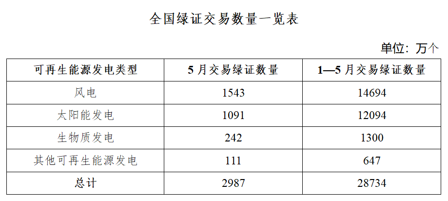 2025年5月,全國交易綠證2987萬個,其中綠色電力交易綠證1005萬個。2025年1-5月,全國交易綠證2.87億個,其中綠色電力交易綠證9623萬個。(調(diào)減1-4月交易綠證數(shù)量168萬個)