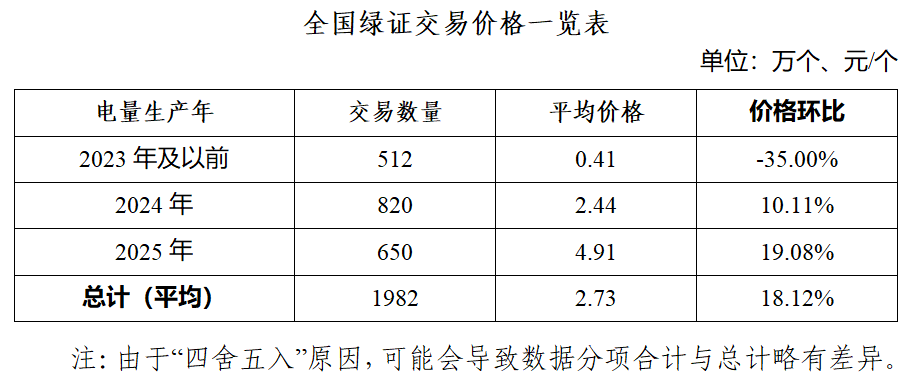 2025年5月,全國綠證單獨交易1982萬個,交易平均價格為2.73元/個,環(huán)比增長18.12%。