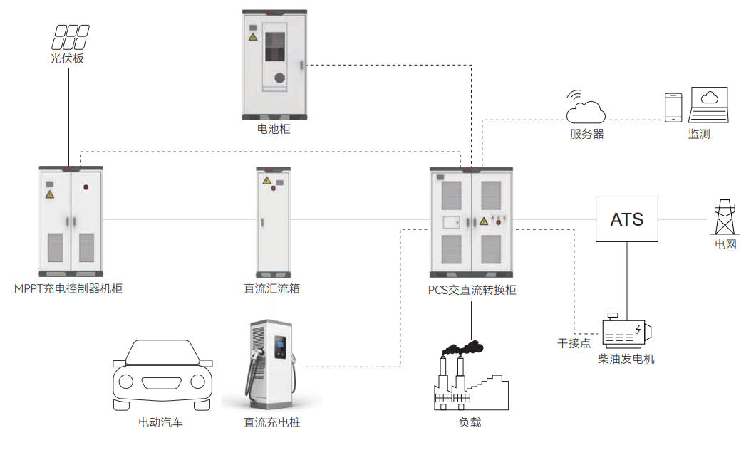 面對發(fā)展中國家工商業(yè)場景電力需求痛點,優(yōu)能新能源憑借領(lǐng)先的直流耦合工商業(yè)儲能解決方案,創(chuàng)新性地將光伏發(fā)電、儲能系統(tǒng)、柴油發(fā)電機(jī)和直流快充樁有機(jī)整合,打造出"光儲柴充"四位一體的智慧微電網(wǎng)系統(tǒng),為海外用戶提供穩(wěn)定、經(jīng)濟(jì)、可持續(xù)的電力保障方案。