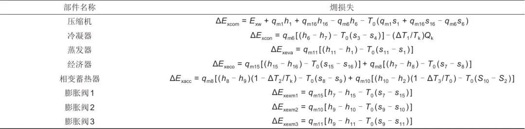 表2 系統(tǒng)各部件的?損失計(jì)算公式