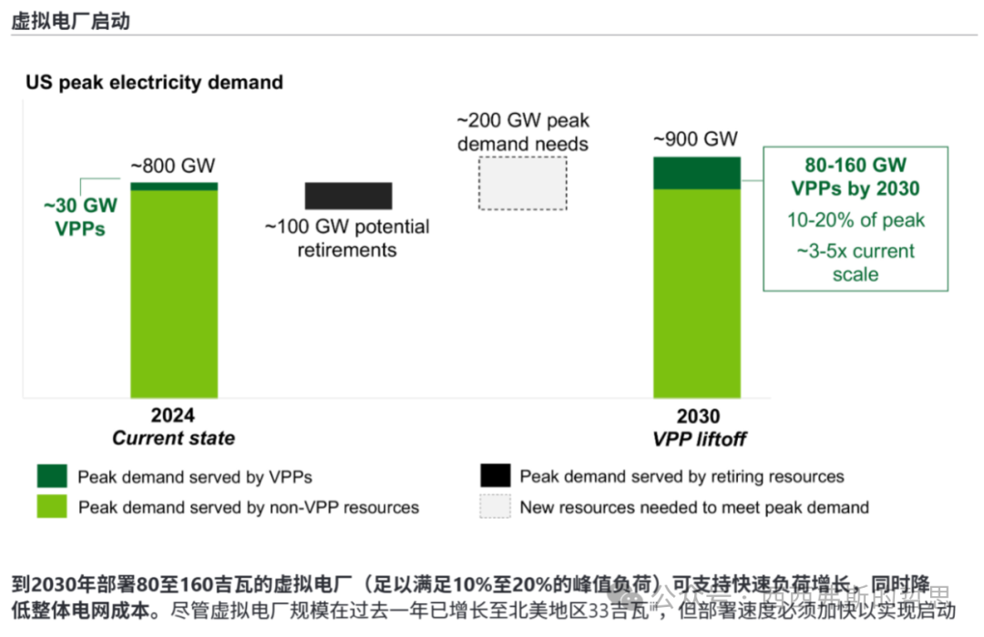 - 報告預(yù)測,到2030年,美國VPP的規(guī)模有望增長三倍,達到80-160吉瓦(GW),可以滿足全國10-20%的峰值負荷需求。