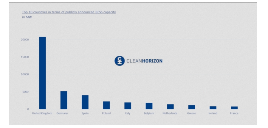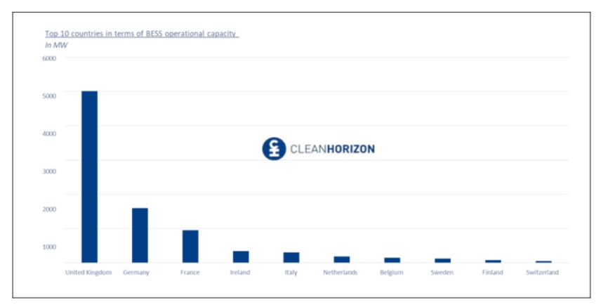 在考察歐洲運營電池儲能系統的主要市場時,英國以顯著的優(yōu)勢脫穎而出。英國儲能市場增長是由幾年前舉行的定向拍賣推動的,這些拍賣分配了大量儲能容量。此外,英國已經建立了利潤豐厚的輔助服務市場,為儲能系統吸引了大規(guī)模投資。