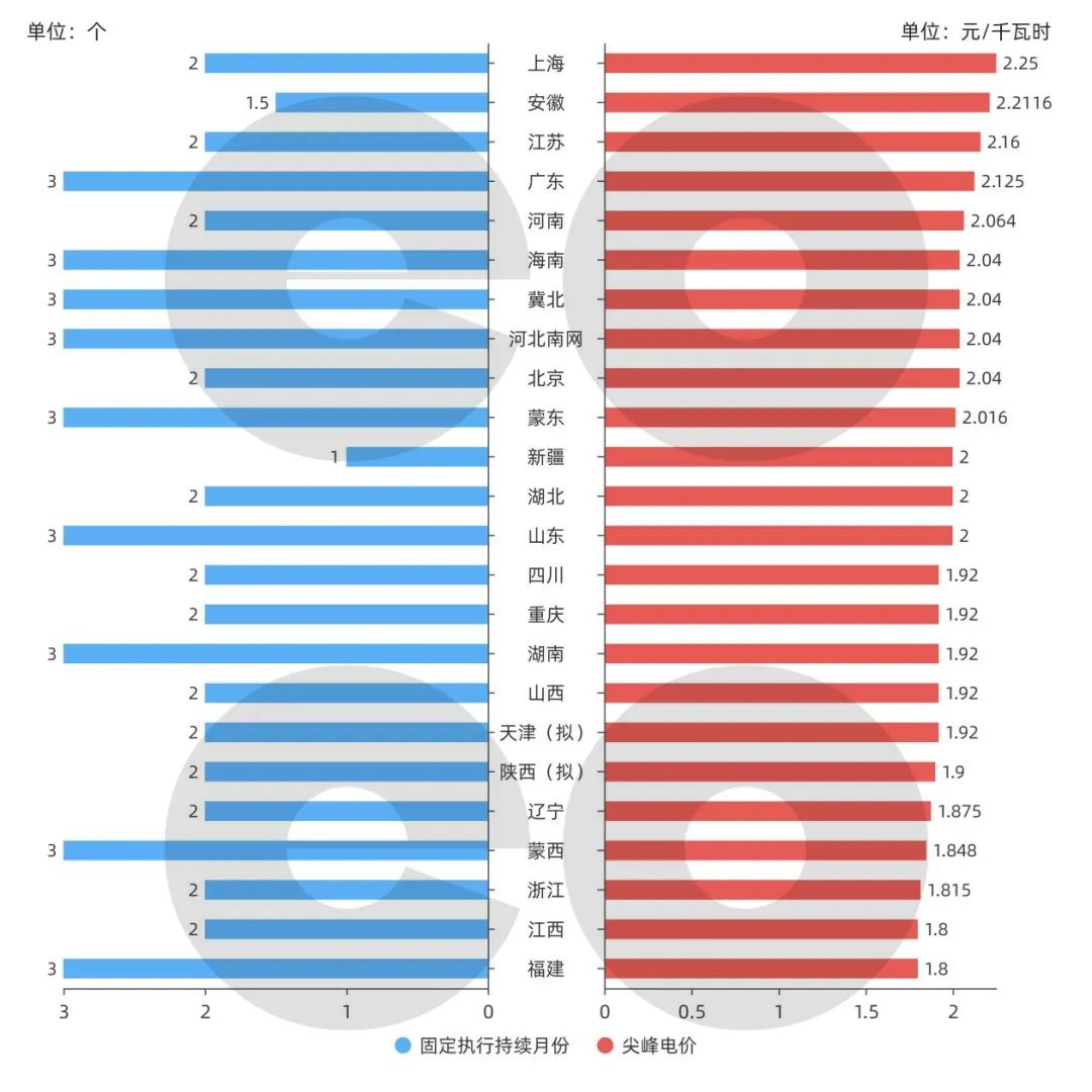 ①北京、浙江尖峰電價為不同用電類型尖峰電價均值;