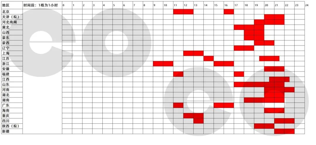 據(jù)《南方能源觀察》統(tǒng)計,截至目前,國內(nèi)已有22個?。▍^(qū)、市)執(zhí)行夏季尖峰電價,主要集中在7、8月份的晚高峰時段,時長多為2—3個小時。其中,山東全年執(zhí)行尖峰電價,6—8月的尖峰電價時長為5個小時,其余月份為2—3個小時。黑龍江、廣西、云南暫緩執(zhí)行尖峰電價。