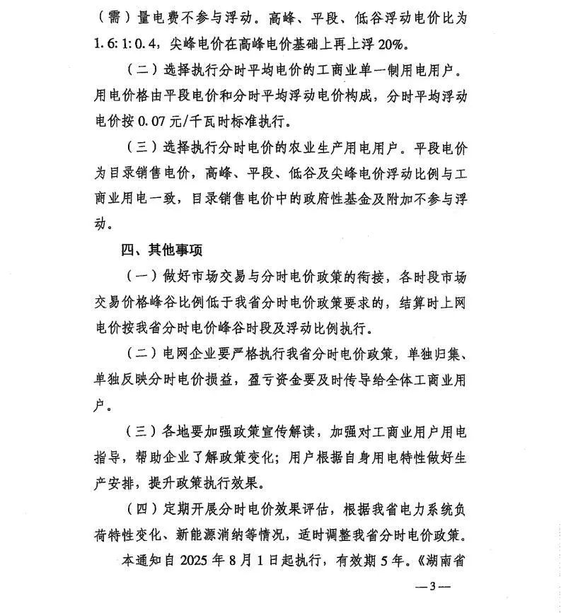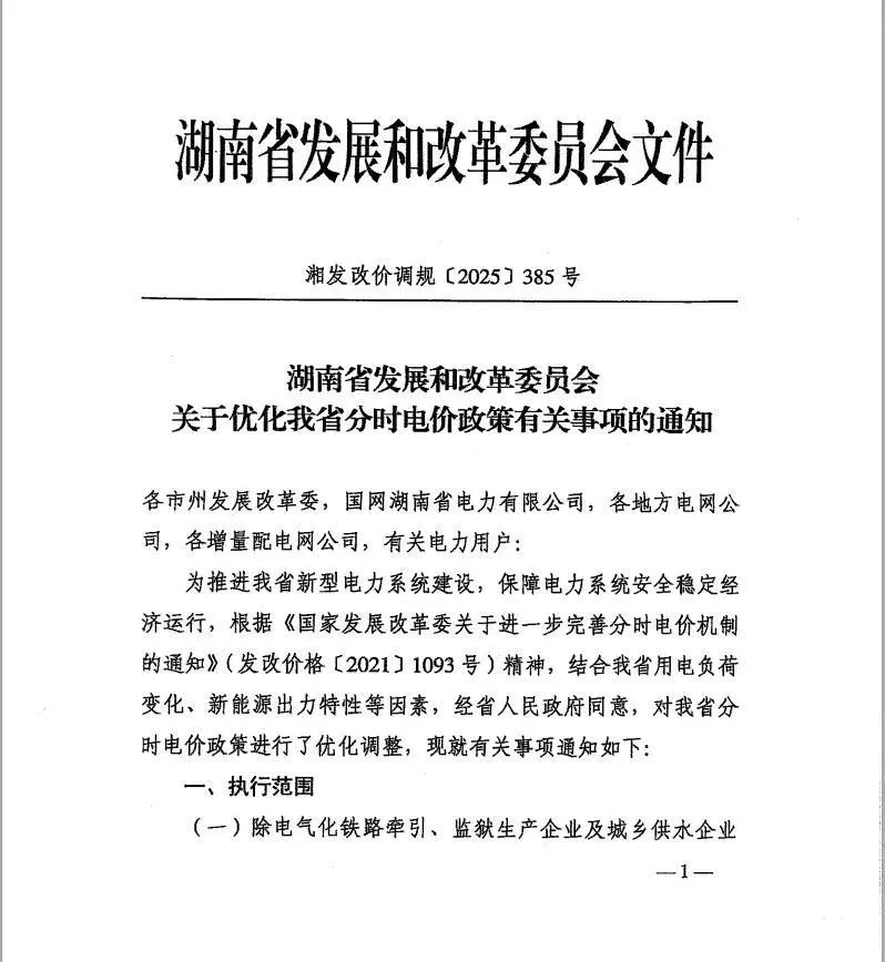 中國(guó)儲(chǔ)能網(wǎng)訊:近日,湖南省發(fā)展和改革委員會(huì)發(fā)布《關(guān)于優(yōu)化我省分時(shí)電價(jià)政策有關(guān)事項(xiàng)的通知》,對(duì)湖南省分時(shí)電價(jià)政策進(jìn)行了優(yōu)化調(diào)整,自2025年8月1日起執(zhí)行,有效期5年。
