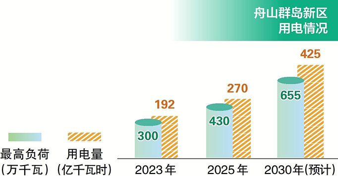 “結(jié)合新區(qū)發(fā)展規(guī)劃,未來舟山將大力發(fā)展綠色石化和新材料、船舶與海工裝備等產(chǎn)業(yè),預(yù)計(jì)到2027年,新區(qū)最高負(fù)荷將達(dá)610萬千瓦,比2024年增長(zhǎng)82%?!敝凵焦╇姽景l(fā)策部專職張宇東介紹。如今,舟山電網(wǎng)按“五年一臺(tái)階、七年一跨越、十五年一飛越”三個(gè)階段推進(jìn)新型電力系統(tǒng)目標(biāo)網(wǎng)架建設(shè)。到2027年,舟山電網(wǎng)將形成以2座500千伏變電站為核心、220千伏為主干網(wǎng)架的堅(jiān)強(qiáng)海島電網(wǎng),全力滿足新區(qū)發(fā)展規(guī)劃新增用電需求。
