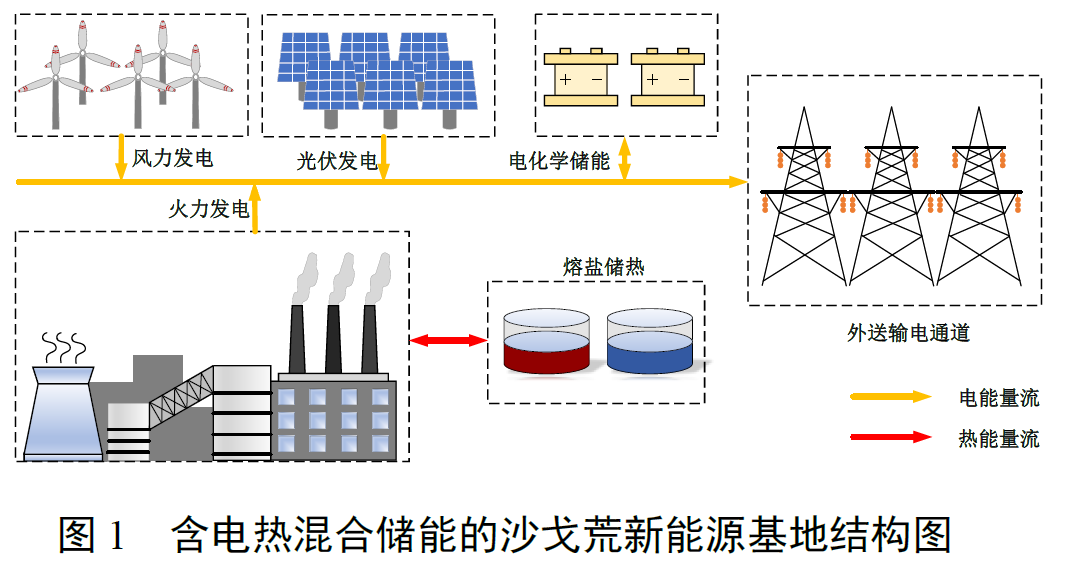 以沙漠、戈壁、荒漠地區(qū)為重點(diǎn)的大型新能源基地正在加快開發(fā)建設(shè),為提升電力系統(tǒng)靈活調(diào)節(jié)能力,促進(jìn)新能源高水平消納,該文提出一種考慮熔鹽儲(chǔ)熱耦合火電機(jī)組改造的沙戈荒新能源基地混合儲(chǔ)能優(yōu)化配置方法。首先,針對(duì)含電化學(xué)儲(chǔ)能和熔鹽儲(chǔ)熱的沙戈荒新能源基地,分析了熔鹽儲(chǔ)熱耦合火電機(jī)組改造的基本原理及內(nèi)部能量流動(dòng)關(guān)系,并構(gòu)建了適合系統(tǒng)運(yùn)行分析的數(shù)學(xué)模型。其次,計(jì)及碳排放交易對(duì)儲(chǔ)能優(yōu)化配置的影響,建立沙戈荒新能源基地電熱混合儲(chǔ)能雙層優(yōu)化配置模型,上層模型形成全生命周期成本最小的混合儲(chǔ)能配置方案,下層模型綜合考慮燃料成本、碳排放成本等因素形成基地運(yùn)行策略。最后,以內(nèi)蒙古庫布齊沙漠鄂爾多斯某大型新能源基地為例驗(yàn)證所提方法的有效性,為后續(xù)沙戈荒新能源大基地的開發(fā)建設(shè)運(yùn)行提供有益借鑒。