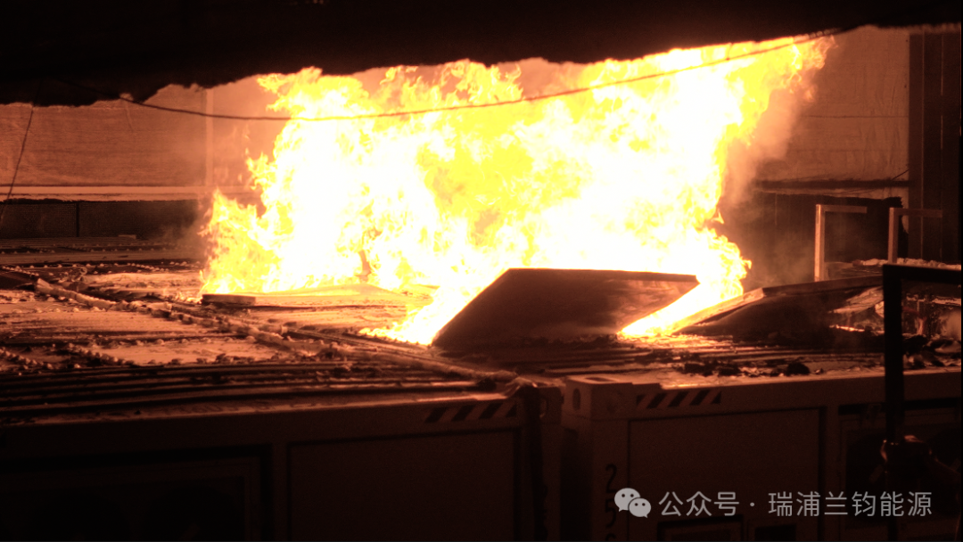 在儲能系統(tǒng)測試中,采用滿裝、滿充的電池艙是極為嚴(yán)苛的條件。此狀態(tài)下,電池存儲能量最大、化學(xué)活性最高,一旦熱失控,釋放的能量最為劇烈,火勢蔓延及對周邊設(shè)備的破壞風(fēng)險(xiǎn)也顯著增加。瑞浦蘭鈞選擇在此極限狀態(tài)下進(jìn)行火燒試驗(yàn),旨在真實(shí)模擬極端事故場景,嚴(yán)苛驗(yàn)證產(chǎn)品的被動(dòng)安全能力。